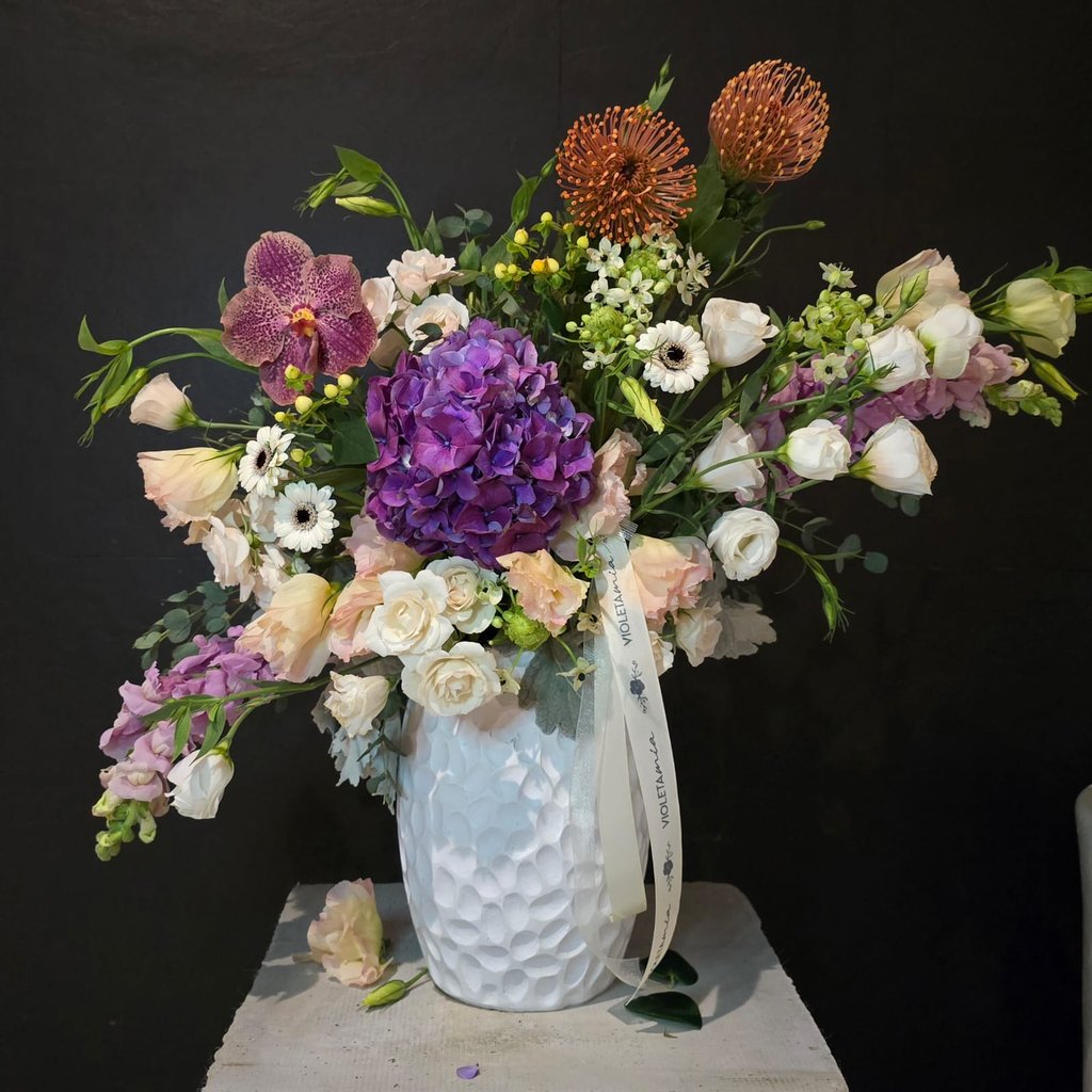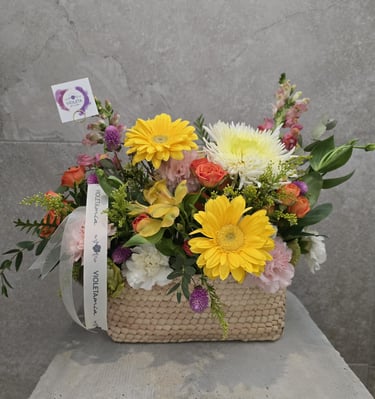 En Violeta Mia, creamos diseños florales únicos con flores naturales, ideales para cualquier ocasión especial como cumpleaños, bodas y eventos. Cada bouquet es una obra de arte personalizada.