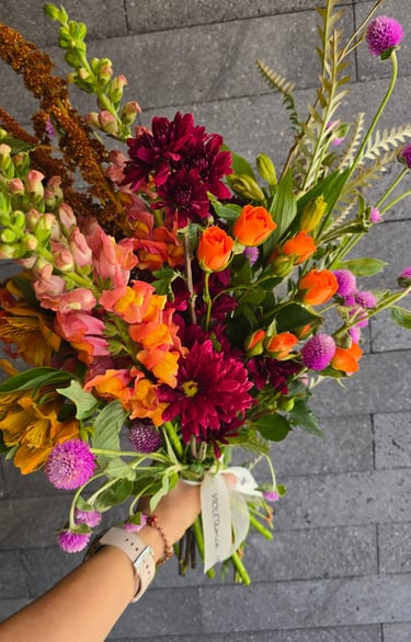 Cada pieza es única, elaborada con flores de temporada y un toque artístico que distingue nuestro trabajo.